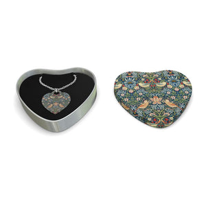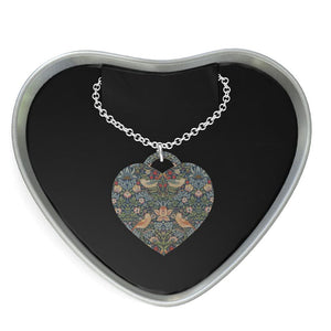 Art Nouveau Sterling Silver Heart Necklace, William Morris "The Strawberry Thieves"