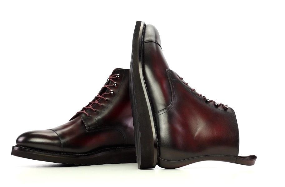 Handmade Goodyear Welted Boots in Burgundy Burnished Leather